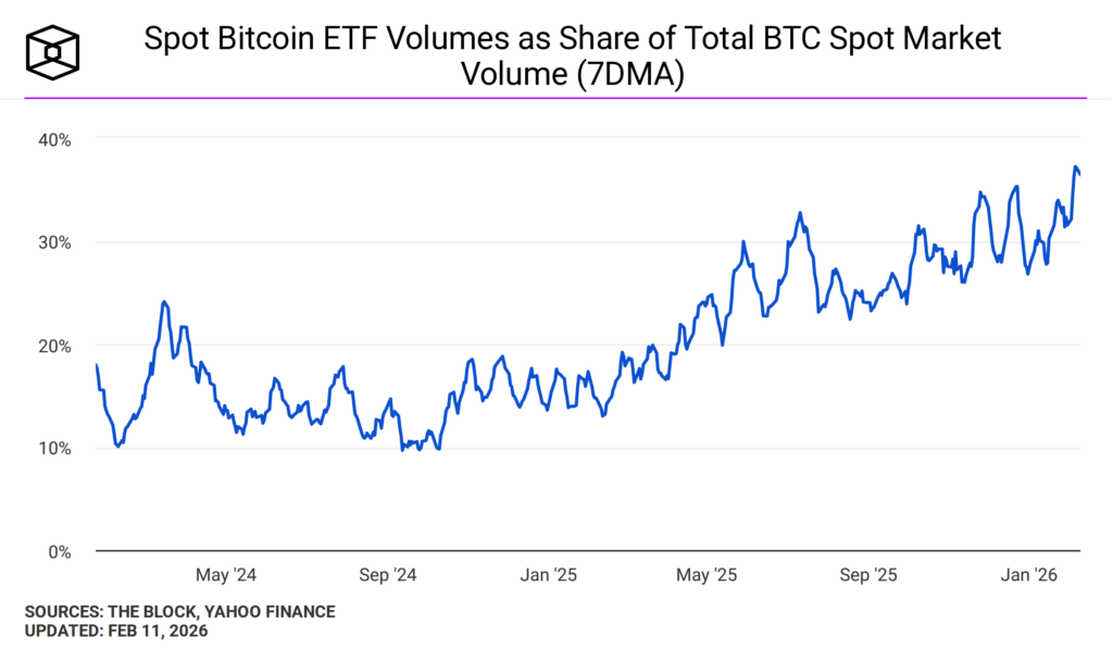 That shift matters. In mature markets, many retail investors treat broad equity or bond ETFs as long-term holdings. Crypto is different. For a large segment of market participants, it remains an opportunistic or high-beta trade rather than a strategic allocation. The same investor who passively holds an S&P 500 ETF for years may actively trade Bitcoin exposure when it is available in the same account.