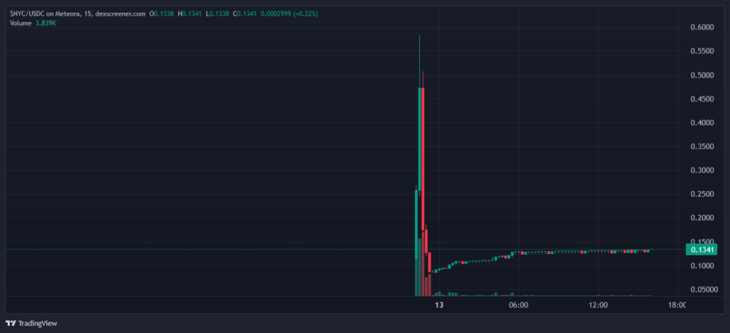 The crypto token launched on Solana and quickly attracted speculative inflows typical of a Solana meme coin. Early trading was concentrated in a small number of liquidity pools. Such a structure can accelerate price movements in thin markets. Market-cap estimates put NYC Token as high as roughly $580 million to $730 million at its peak. Even by meme-coin standards, that’s an unusual scale for a newly launched asset.