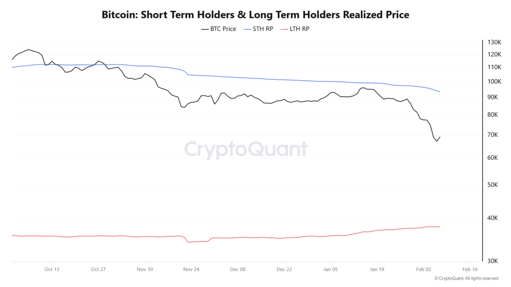 On-chain data, therefore, centers on a single threshold. The reaction around the LTH realized price can determine whether the market stabilizes or weakens further.