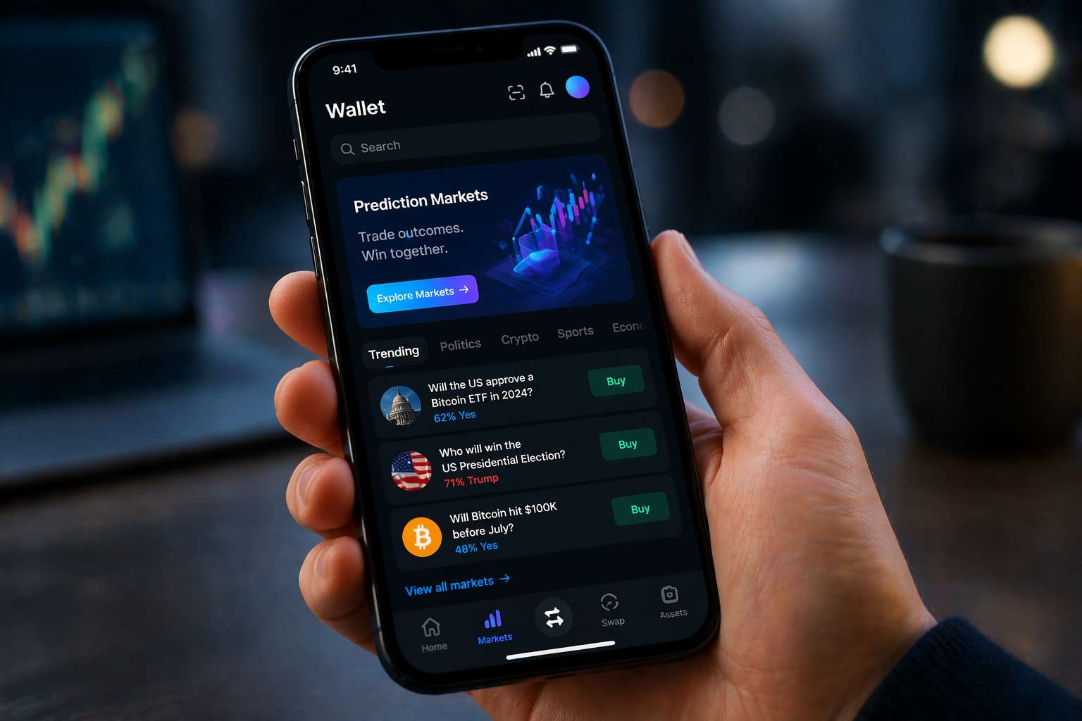 Rather than redirecting users to an external platform, the feature is embedded directly into the wallet interface. This structure keeps trading activity within the app. It also simplifies access for users who may be new to prediction markets.